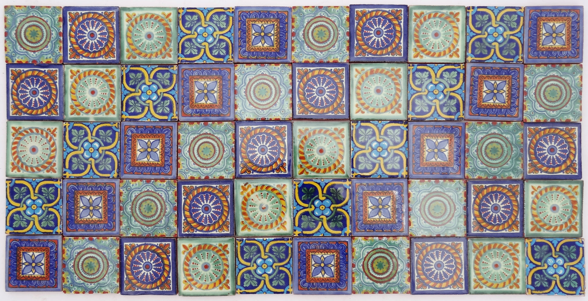 "Hermosos Patrones" Tile Collection - 50 x 5cm Assorted Talavera Mexican Handmade Tiles